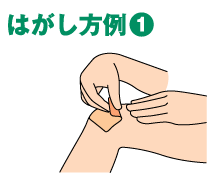 皮膚を押さえながら、ゆっくりはがしましょう。また有毛部位では、毛のはえている方向にそってはがしましょう。